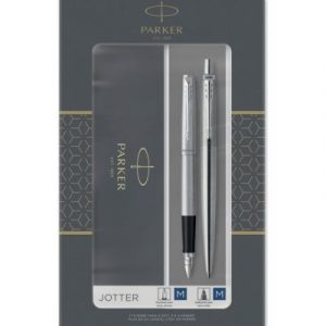 Parker Jotter is a design classic and a familiar model line, appreciated especially for its quality, reliability and favorable price-performance ratio. This is a timeless model, which is also one of the most popular thanks to the wide range of surface finishes and practical, simple shape.nnBrushed stainless steel body and cap. In combination with a chrome-plated clip, with a polished finish. Stainless steel tip.